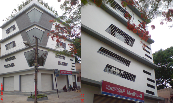 A 4200 sq. ft compact commercial building in an urban center with flexible planning which needed co-ordination and educating the builder’s team involved in their first of the kind project.